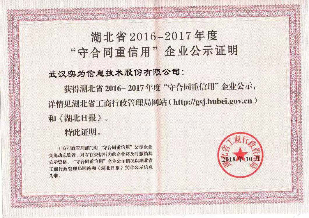 湖北省工商局,湖北省信用促進(jìn)會(huì)于2018年3月22日發(fā)布《省工商局 省企業(yè)信用促進(jìn)會(huì)關(guān)于開展湖北省第十四屆(2016—2017 年度)“守合同重信用”企業(yè)公示活動(dòng)的通知》,