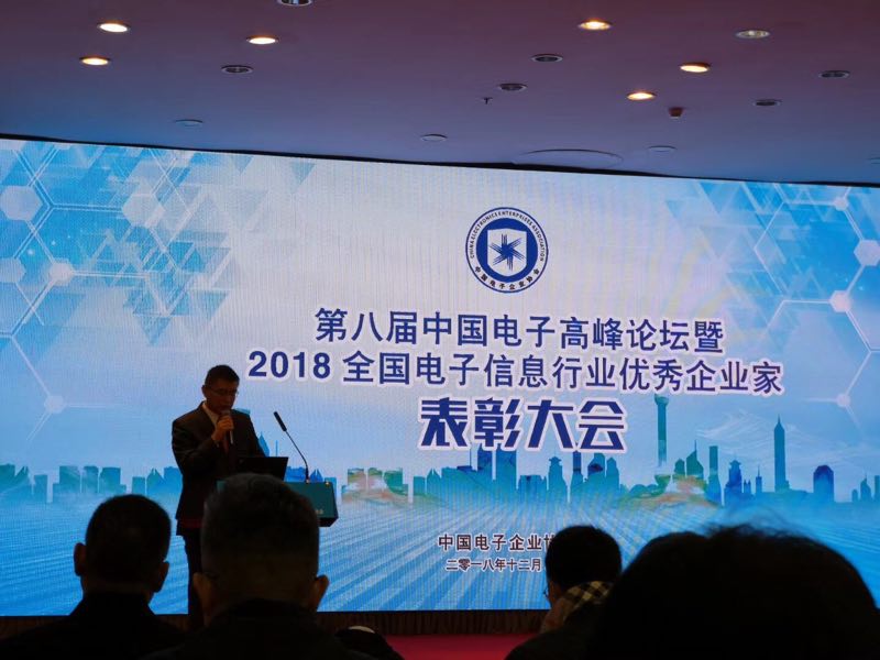 12月20日,第八屆中國電子高峰論壇暨2018全國電子信息行業(yè)優(yōu)秀企業(yè)家表彰大會在北京萬壽賓館隆重召開。