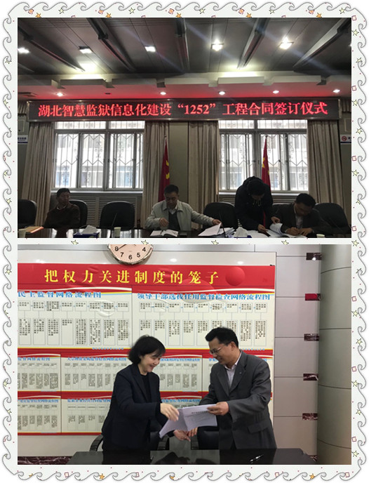 2019年4月9日,實(shí)為公司與湖北省監(jiān)獄管理局正式簽約,圖片為我公司代表和甲方代表現(xiàn)場(chǎng)簽訂合同。
