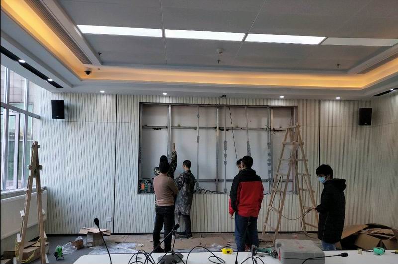 圖為襄陽(yáng)海關(guān)三級(jí)指揮中心信息化建設(shè)項(xiàng)目監(jiān)督大屏安裝施工