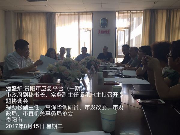 我公司中標(biāo)的貴陽(yáng)市應(yīng)急平臺(tái)一期項(xiàng)目,該項(xiàng)目為今年貴陽(yáng)市政府信息化重點(diǎn)工程,圖為我公司參與組織的項(xiàng)目專題協(xié)調(diào)會(huì),由貴陽(yáng)市政府副秘書長(zhǎng)、常務(wù)副主任譚承忠組織召開,祿勁松副主任、高澤華調(diào)研員、市發(fā)改委、市財(cái)政局、市直機(jī)關(guān)事務(wù)局參加。